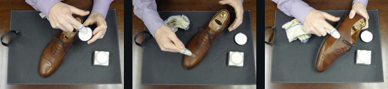 W celu dogłębnego oczyszczenia porów skóry i jej regeneracji stosujemy Saphir Renovator Cream. Aplikujemy minimalne ilości (krem jest bardzo wydajny) za pomocą szmatki, masując skórę okrężnymi ruchami. W celu lepszej kontroli ilości nakładanego kremu, polecamy pozostawić jego część na pokrywce słoiczka, z której będzie nam zdecydowanie łatwiej dawkować.