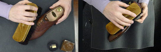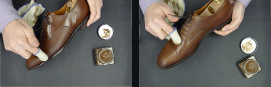 UWAGA: Jeżeli jednak zależy Ci na najwyższym połysku (Mirror Shine, High Gloss), który zawsze zostanie zauważony, w ostatniej kolejności użyta być powinna na noskach i pietach pasta woskowa Saphir Pate de Luxe. O osiąganiu "lustra" na butach przeczytaj TU.