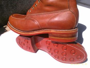 Wymiana podeszwy to również okazja na zmianę wyglądu naszych butów. Poniżej przykład, na którym oryginalną podeszwę zastąpiono czerwoną podeszwą typy Dainite - buty prezentuję się zupełnie inaczej!